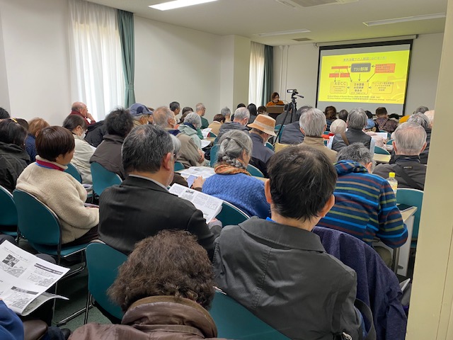 例年通り50人収容の会議室を取っていましたが80人もの参加があり、椅子を追加し、資料が足りず途中印刷に走るという不手際があり、主催者として大いに反省しています。講演では731部隊の実態についての詳しい説明や戦後の部隊員の証言、部隊で指導していた医師たちの戦後など初めて知る内容でした。特に彼らが広島・長崎、第5福竜丸事件からフクシマまで、放射線の影響調査に大きくかかわっていた点は驚きでした。1時間半では話しきれず、参加者からももっと話を聞きたいという要望がありました。